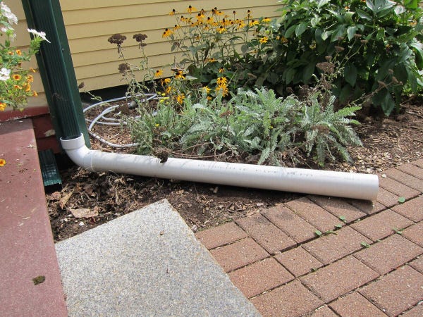 Underground Downspout Extension Keeps Roof Water Away From Foundation